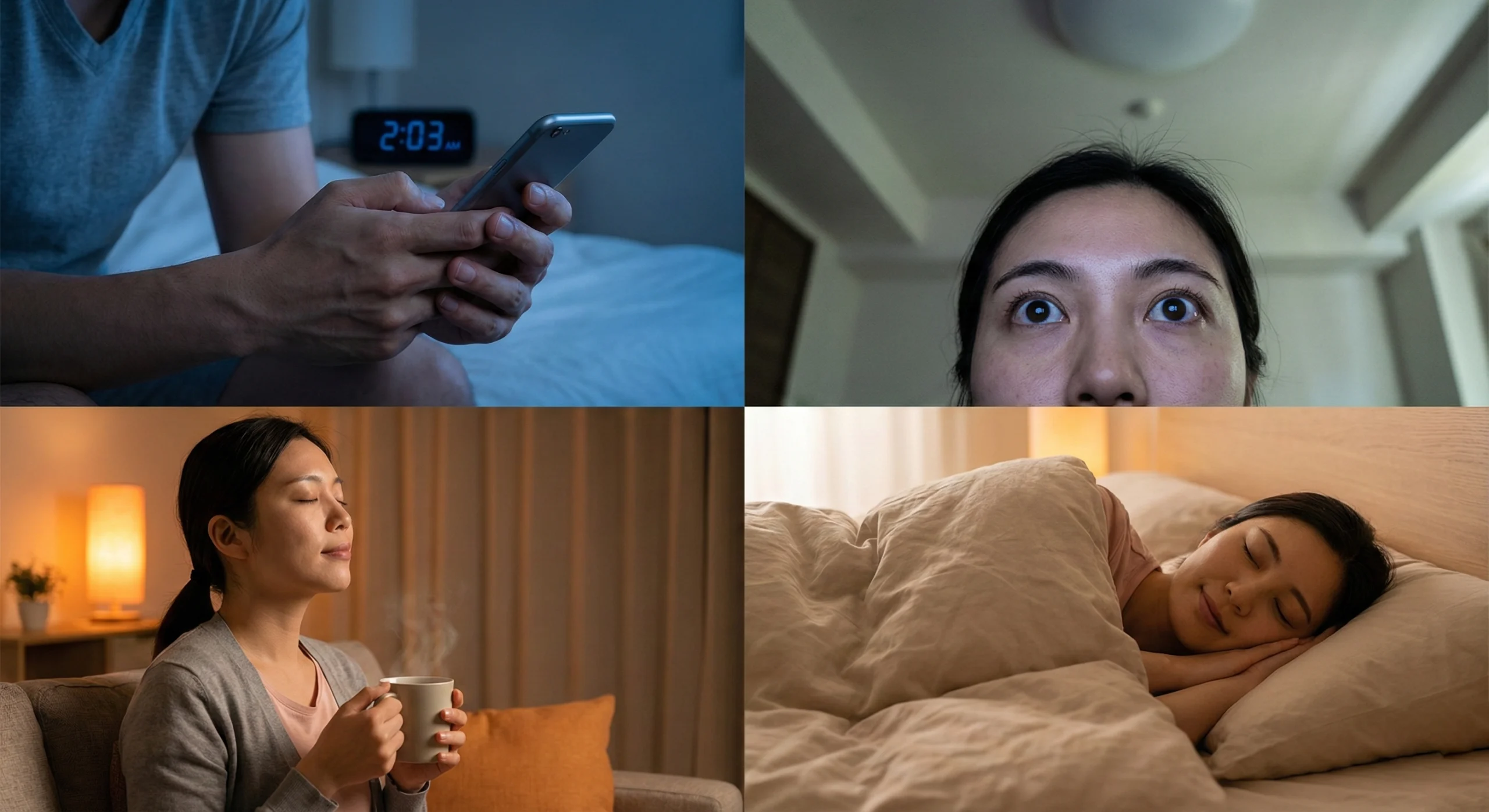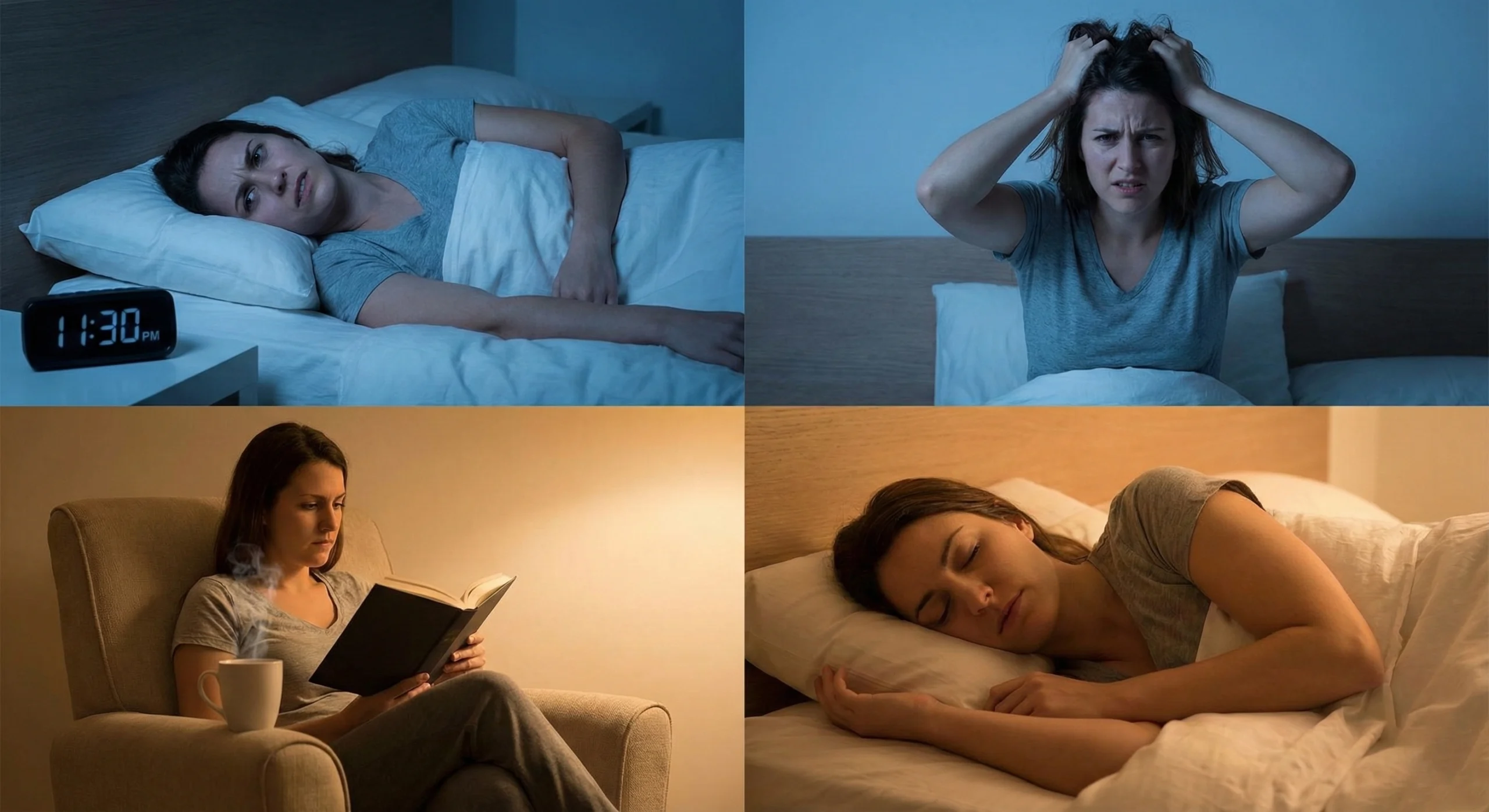 Thoughtful perspectives on sleep challenges, tension, and non-invasive relaxation.